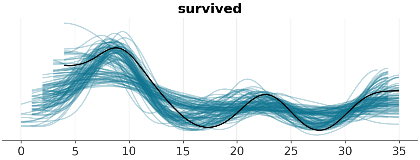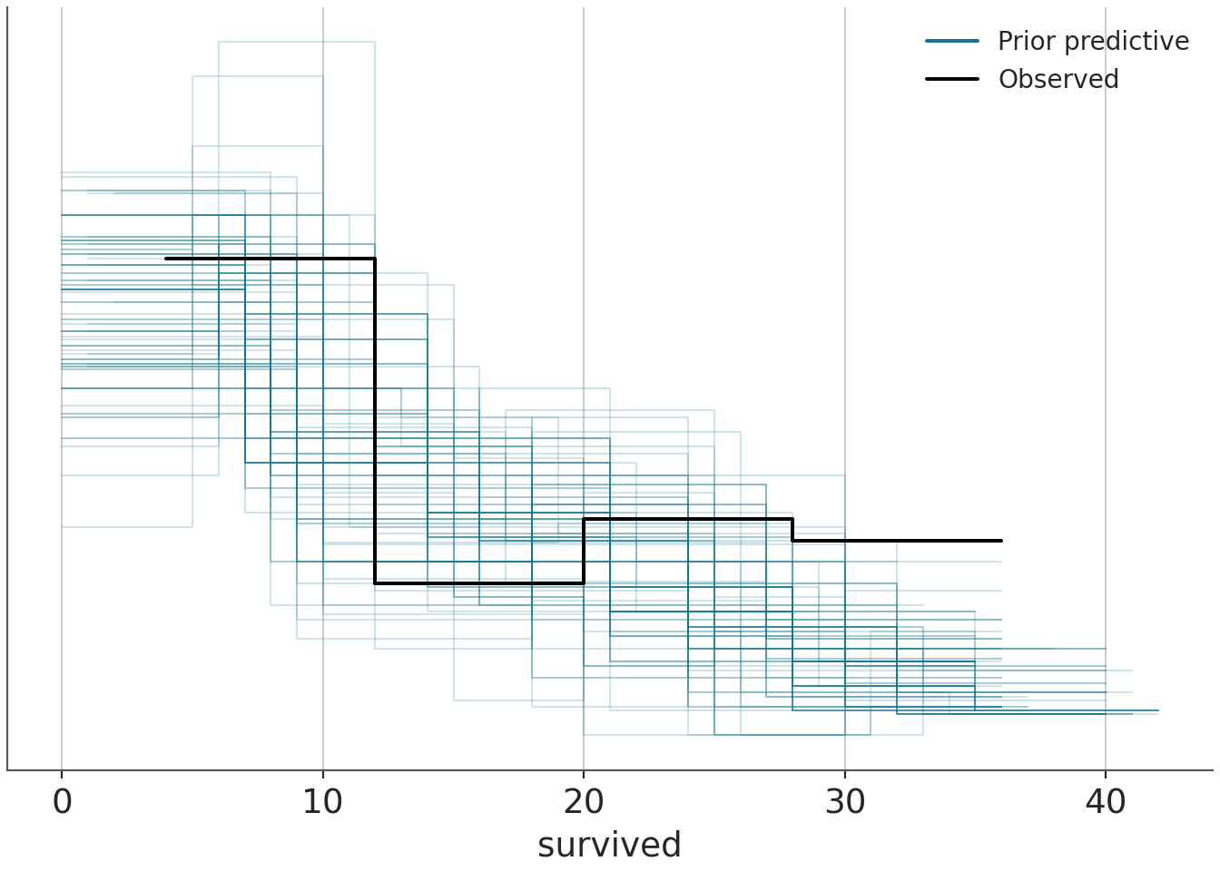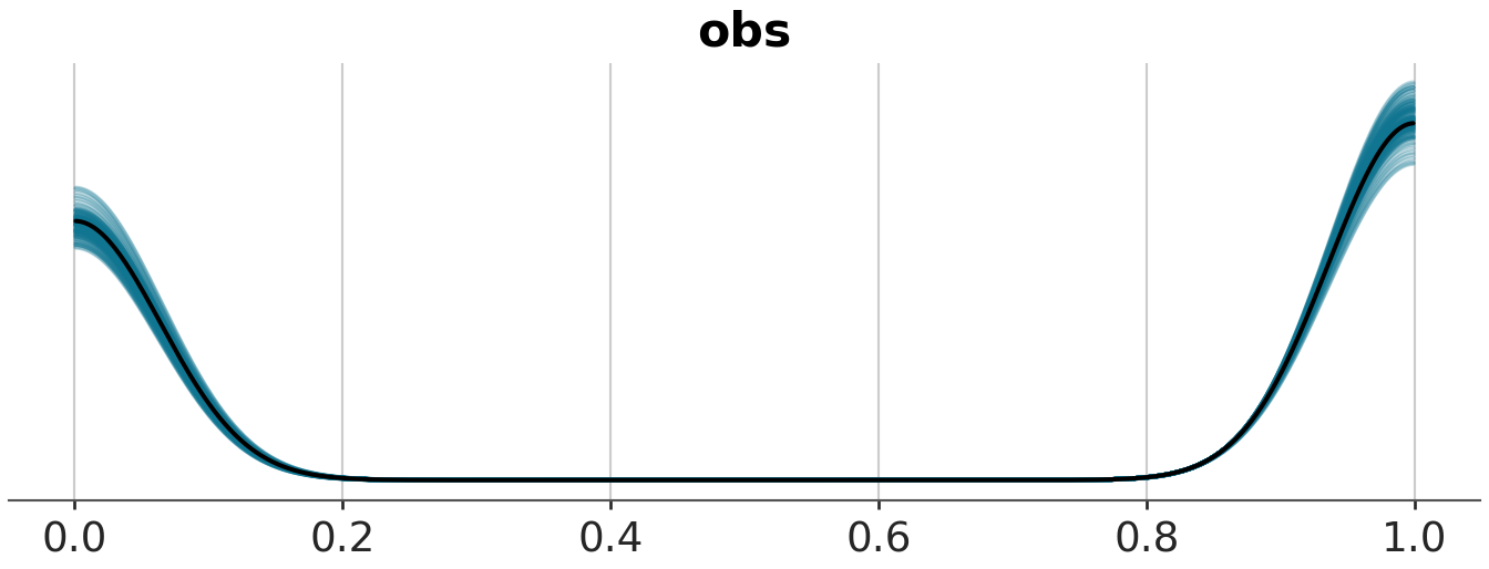 azp.plot_ppc_dist(chimp_model_trace, group="posterior_predictive", num_samples=100)<string>:1: UserWarning: Detected at least one discrete variable.