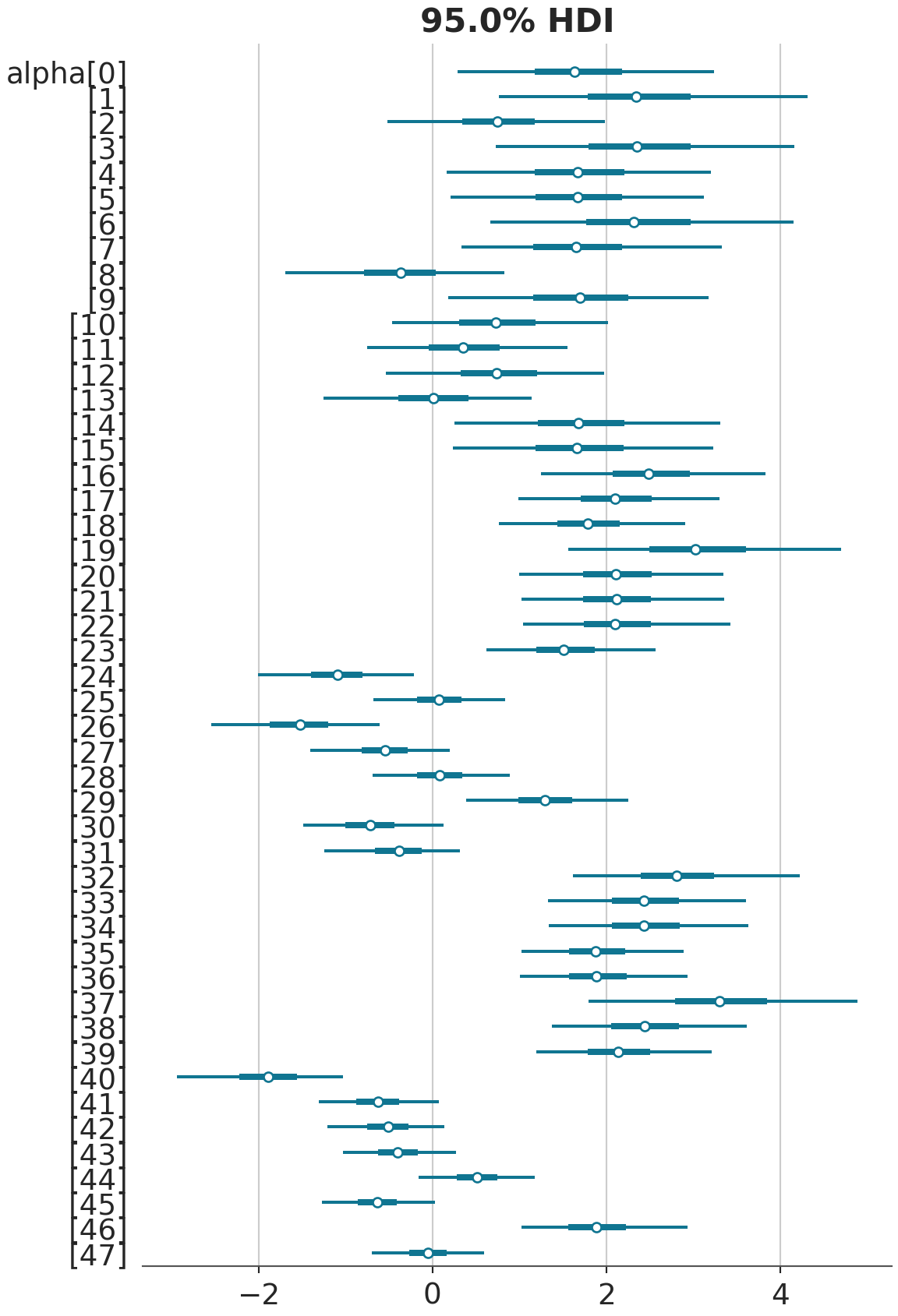 az.plot_forest(chimp_model_trace, kind='forestplot', combined=True, hdi_prob=0.95)