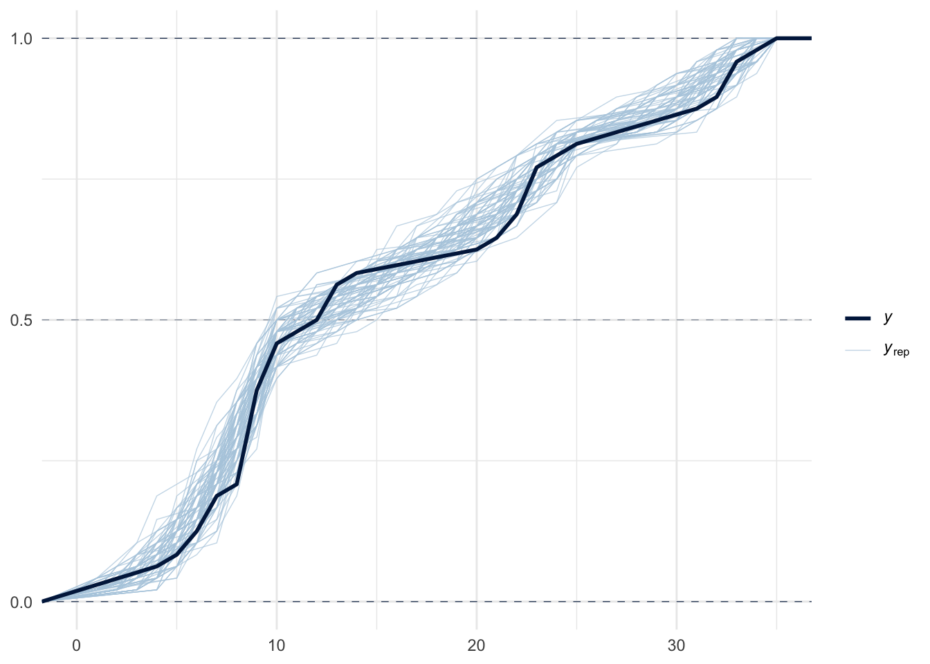 pp_check(m3, ndraws = 100, type="ecdf_overlay")